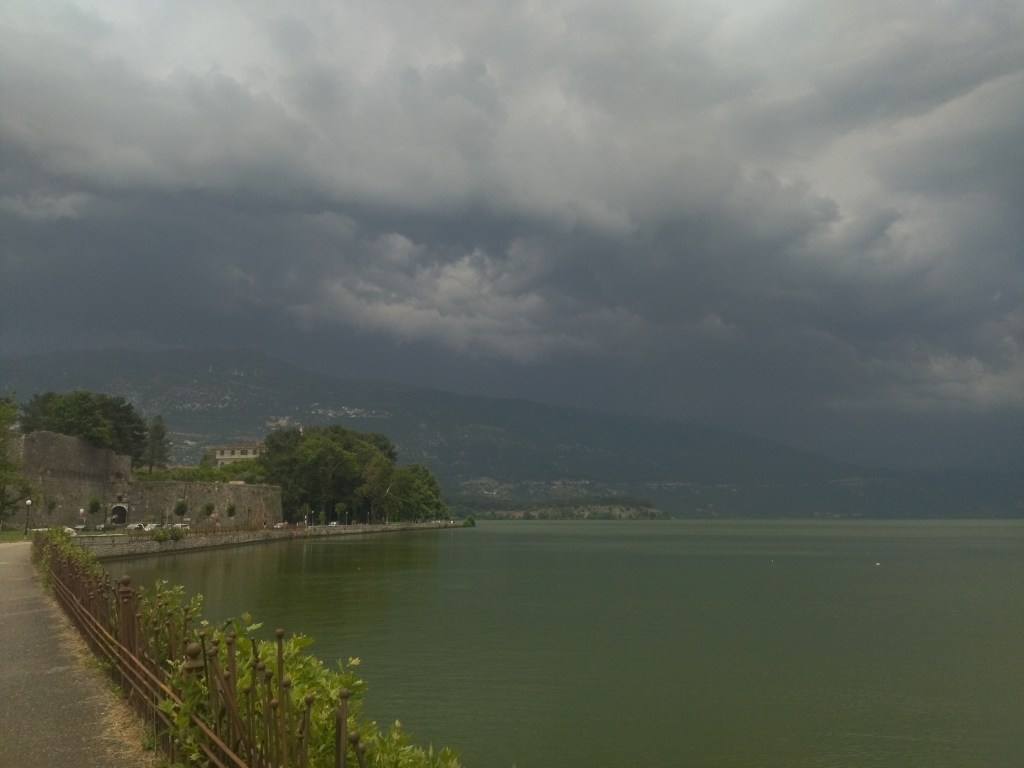 Το ταξίδι συνεχίζεται και οι εικόνες πολλαπλασιάζονται. Ο δρόμος μας βγάζει στην Ήπειρο και καταλαβαίνεις την αλλαγή στο γεωγραφικό τμήμα περνώντας από τον επίσης γεμάτο νερό ποταμό Άραχθο της Άρτας. Την ίδια στιγμή, το τοπίο πρασινίζει απότομα με πυκνά δάση, οπότε καταλαβαίνεις ότι μπαίνεις στην Ήπειρο. Στα δεξιά τα Τζουμέρκα όρη και στο βάθος αριστερά ορθώνεται επιβλητικός ο Τόμαρος (ή παλιο-τόμαρος που θα έλεγα με την παρέα). Με χέρια-πόδια ψημένα από τον ήλιο στους 34 βαθμούς πάνω στη μηχανή, επιβάλλεται μία στάση στα Γιάννενα για να δροσιστώ και να φάω επιτέλους αυτό το σάντουιτς που το έχω στην τσάντα από το πρωί. Δεν θα το πιστέψετε, αλλά στα Ιωάννινα ψιχάλιζε. «Τι πιο σύνηθες» που θα έλεγε κάποιος. Η δροσιά της πόλης ήταν κάτι παραπάνω από ευπρόσδεκτη μέσα σε αυτή τη ζέστη.