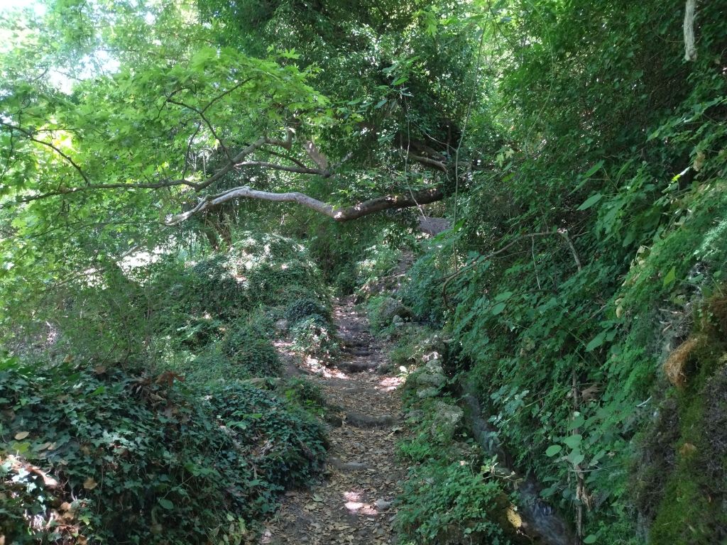 Κατηφορίζοντας τον δρόμο από το Μουσείο, έχεις παρέα το τρεχούμενο νερό σε ένα δροσερό μονοπάτι ανάμεσα στα δέντρα και τα φυτά.
